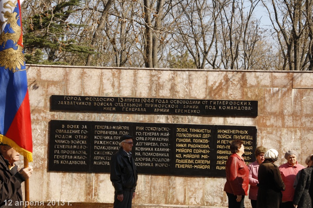 Над городом был поднят красный флаг. «13 апреля 1944 года Этот день навсегда останется в памяти жителей Феодосии как радостный волнующий праздник освобождения от фашистских захватчиков, как день вступления в город героических частей Отдельной Приморской армии», — писала в годовщину освобождения городская газета «Победа».