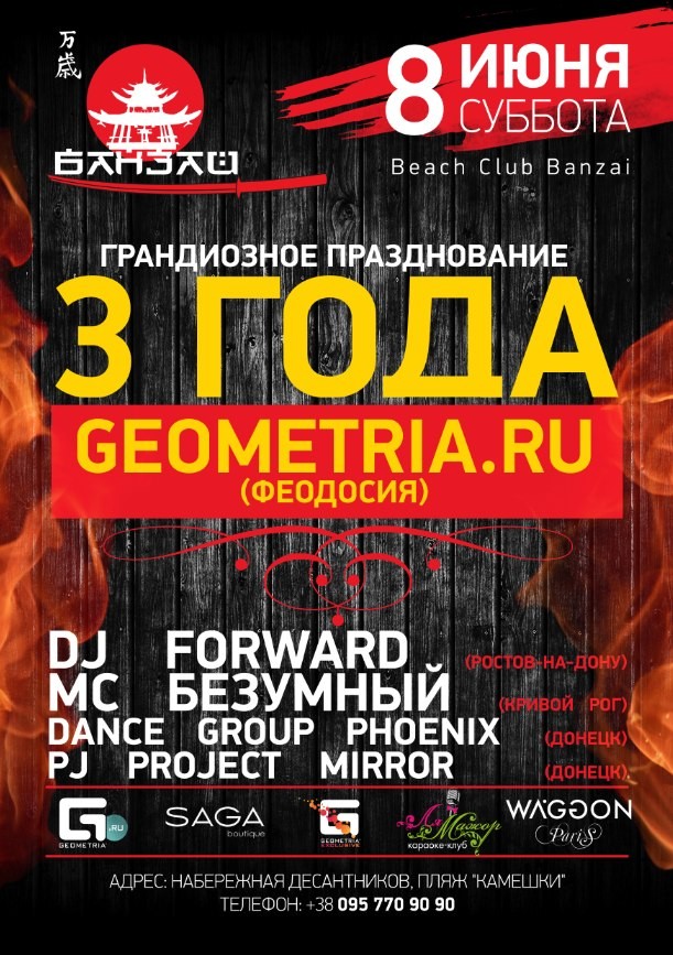 8 Июня - 3 Года Geometria.ru (Феодосия) - club Banzai Закрыть