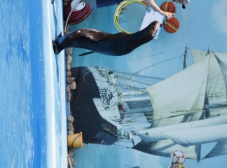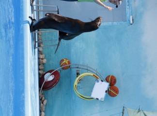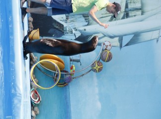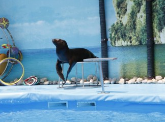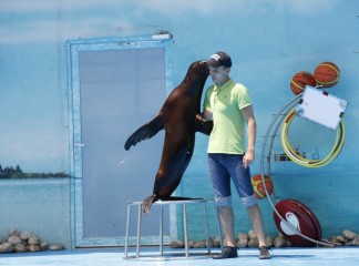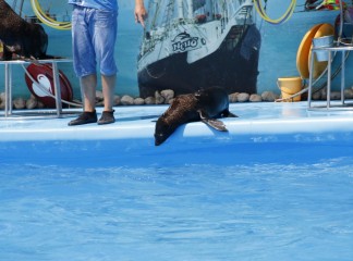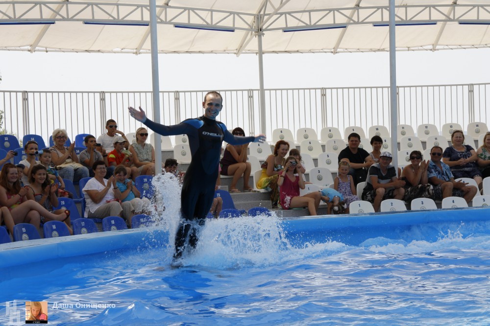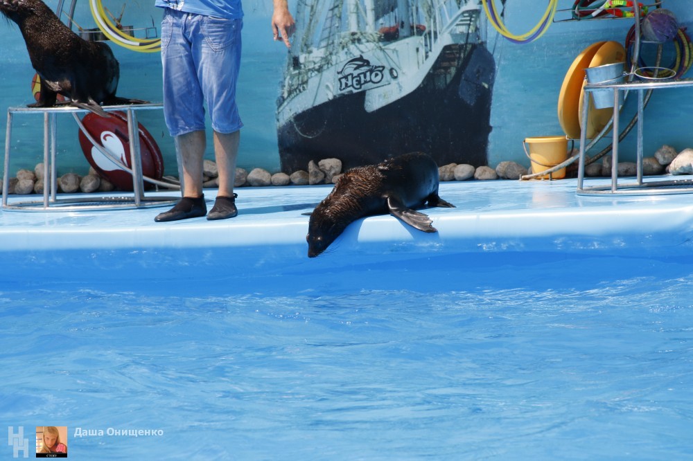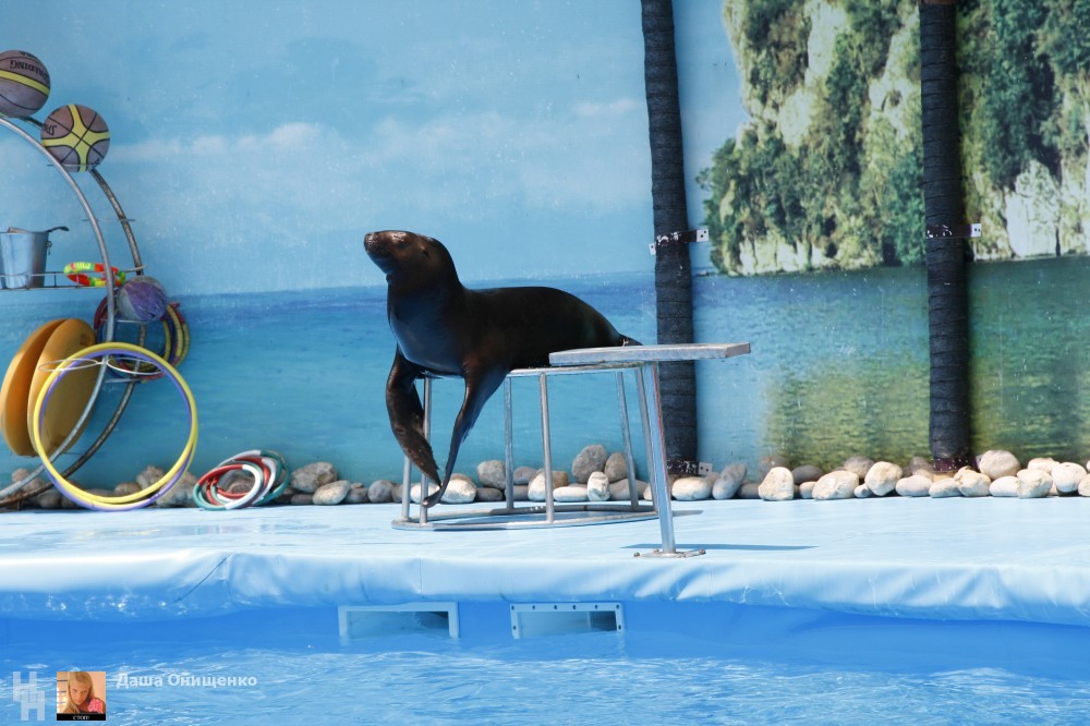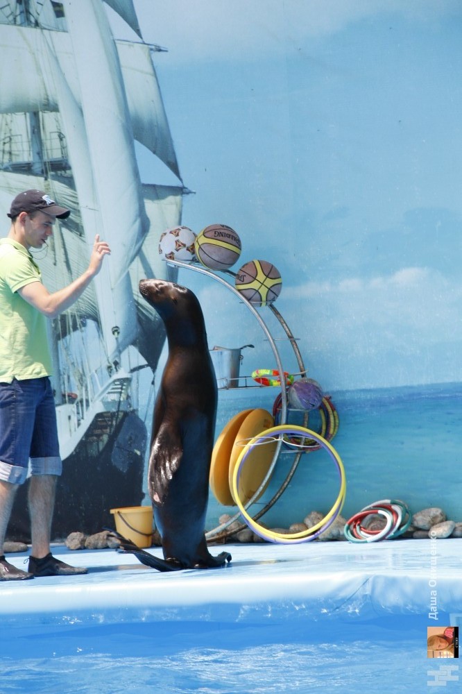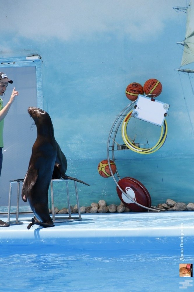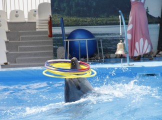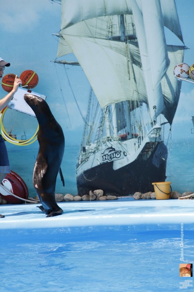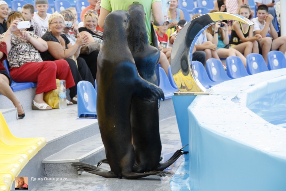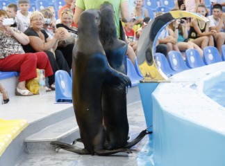 На сцене дельфинария выступают очень талантливые артисты. Морские котики, которые любят побаловаться с кольцами. Морские львицы могут ходить лунной походкой не хуже Майкла Джексона. А также неповторимые дельфины-афалины.