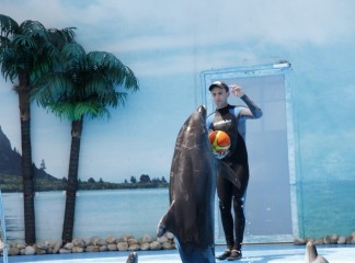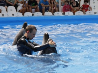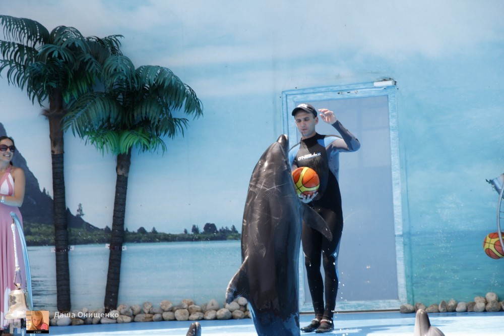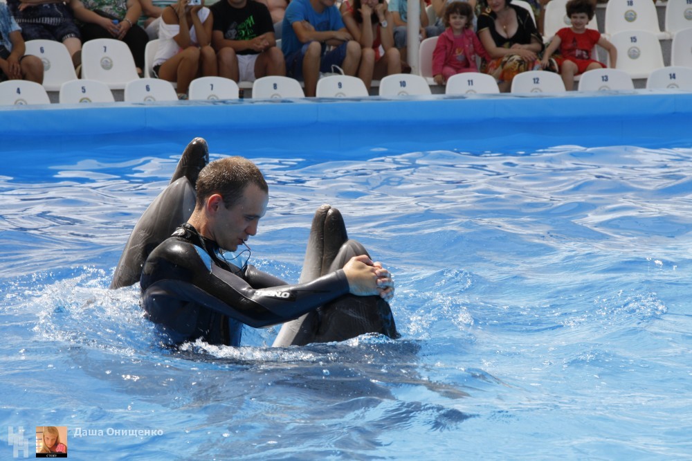 Самое умопомрачительный номер - когда дельфины катали своего тренера на носиках, а также когда они пригласили его на романтичный танец.