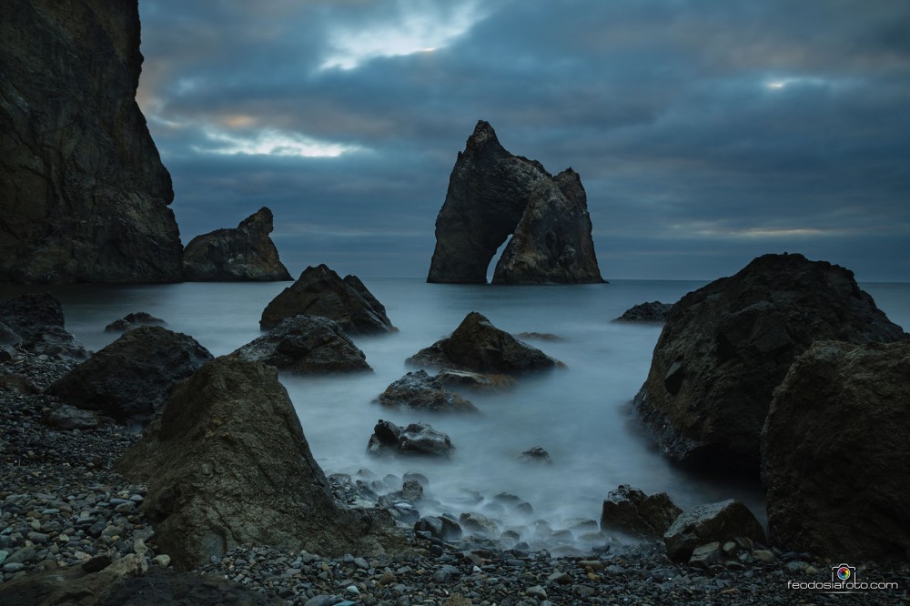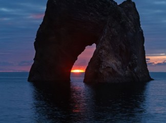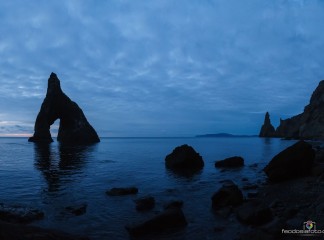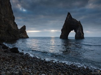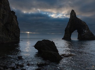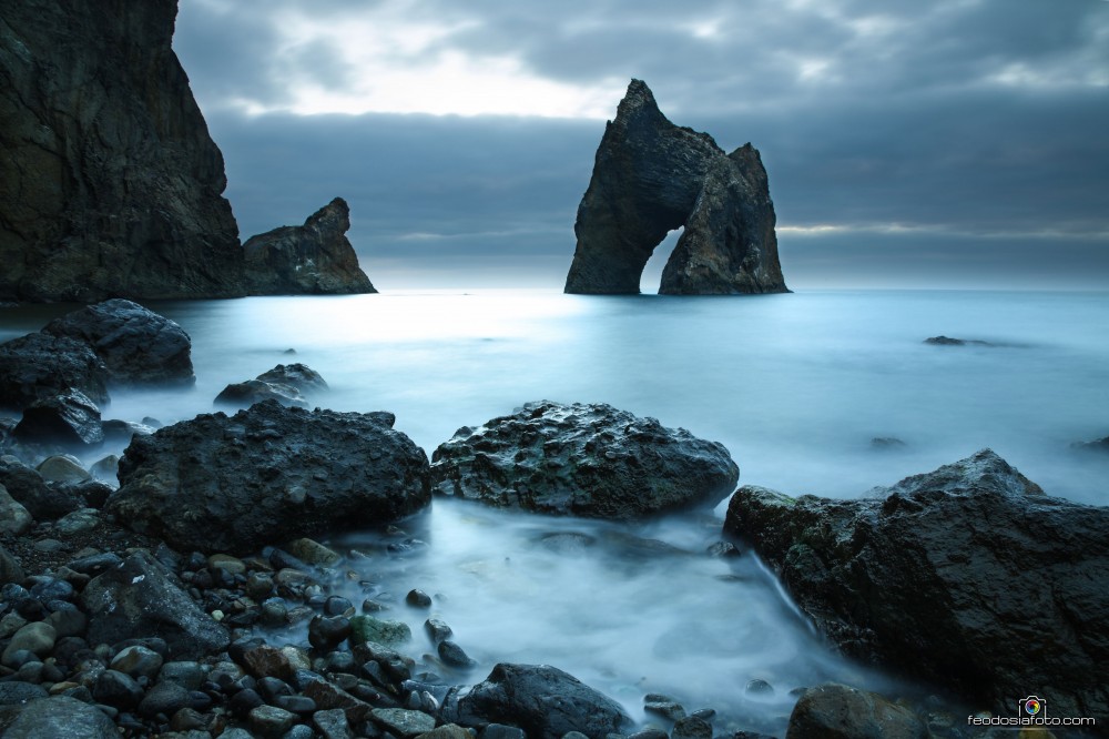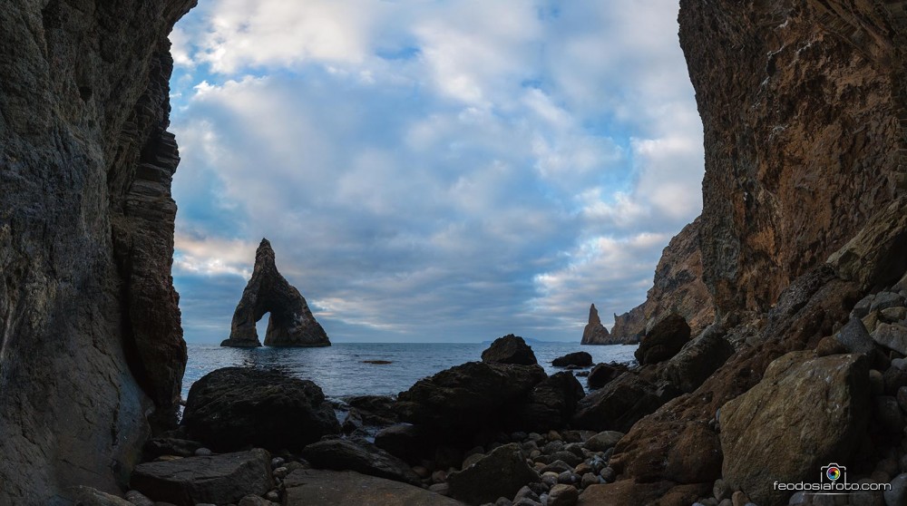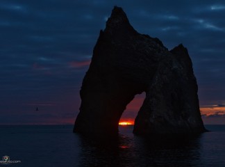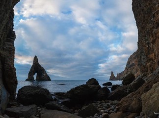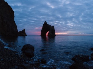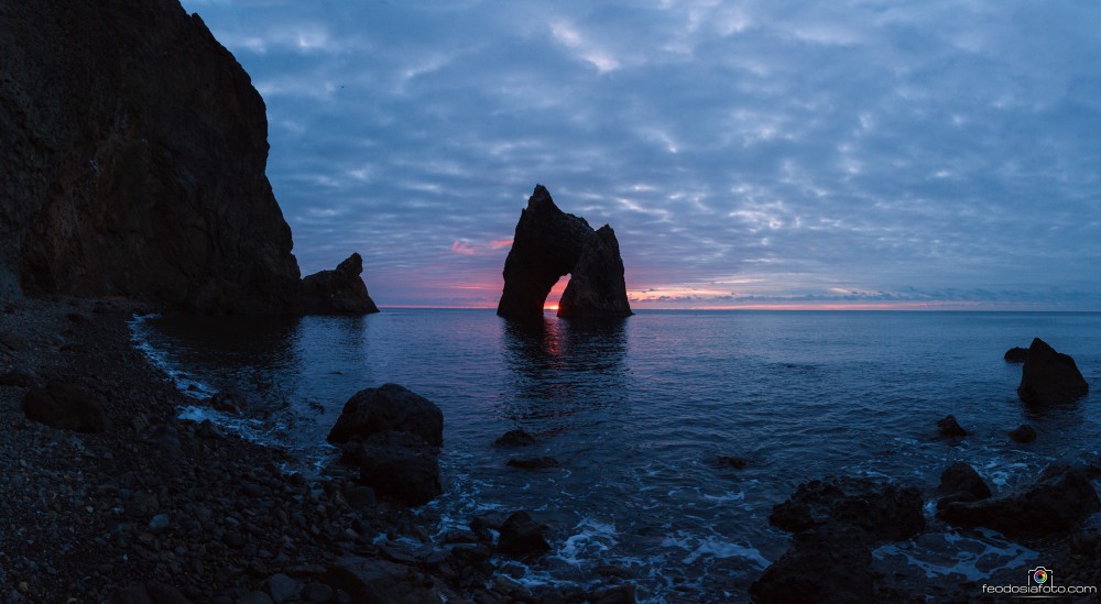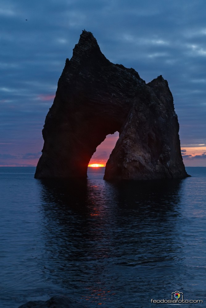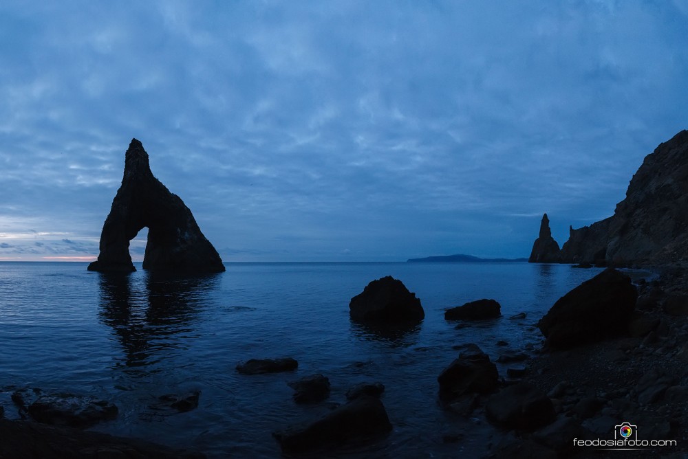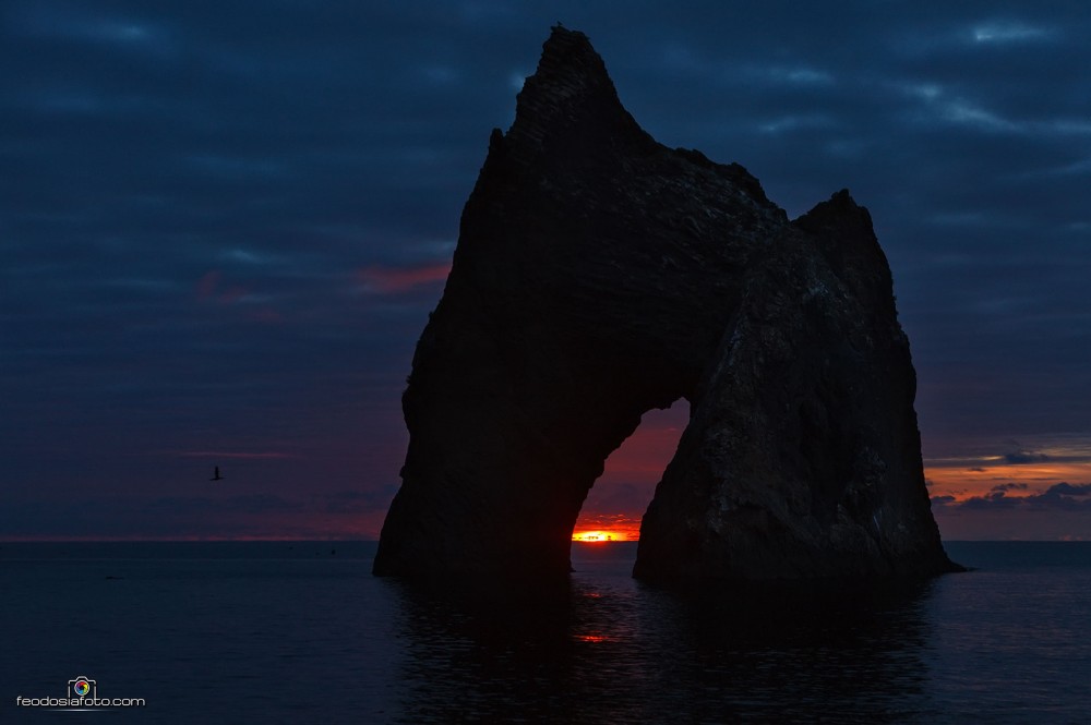 Многие говорят что Крым — это миниатюрная копия нашей планеты, здесь есть моря и горы, степи и реки, уникальные природные памятники и красоты. Что касается Карадагского природного заповедника, то здесь уникальное все, каждый кусочек заповедника не похож ни на что, здесь и отвесные скалы, упирающееся в море и пологие вершины, усыпанные трассом — минералом зеленого цвета и много всего что трудно передать текстом. А чего стоит жемчужина Карадага — Золотые ворота! Это огромная скальная арка, через которую способен пройти прогулочный катер. Есть в этой арке что то что манит сюда людей, и особенно фотографов. Я покажу вам уникальные кадры, сделать которые нереально трудно, ведь территория заповедника тщательно охраняется с суши и с моря, посетить эти места можно только со специальным разрешением и с сопровождением. Еще одно — важнейшее условие — солнце в Золотых воротах встает только во время зимнего солнцестояния, а в это время в Крыму обычно пасмурная погода и на горизонте висит плотная дымка, через которую солнце не видно. К счастью из двух выходов мне все же удалось заснять то, как солнце появляется в арке Золотые ворота.