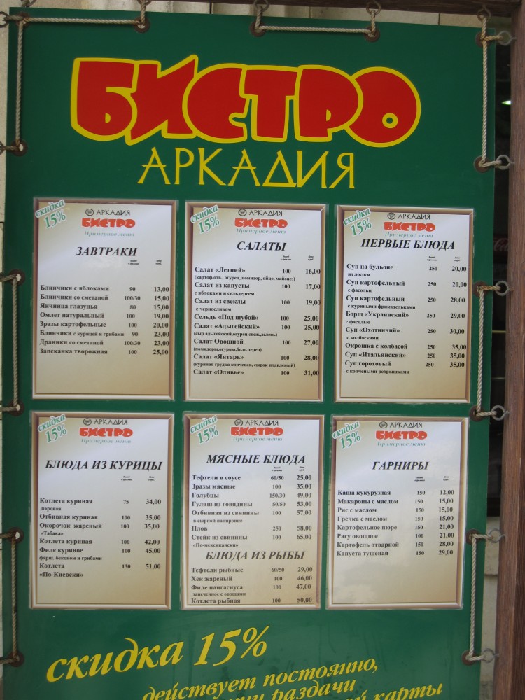 Кафе Аркадия - цены!