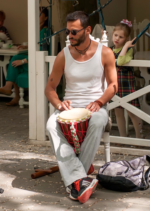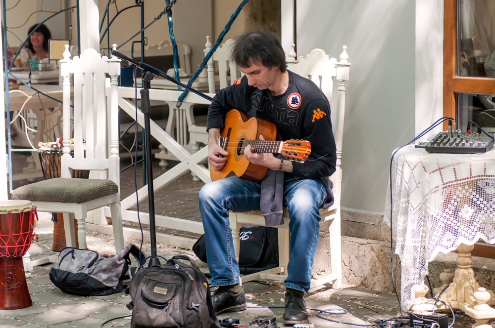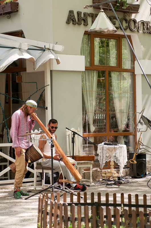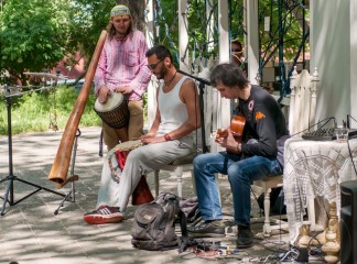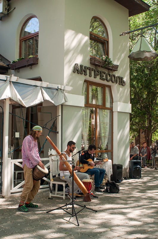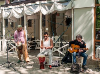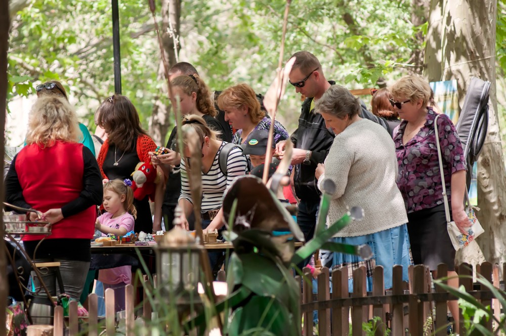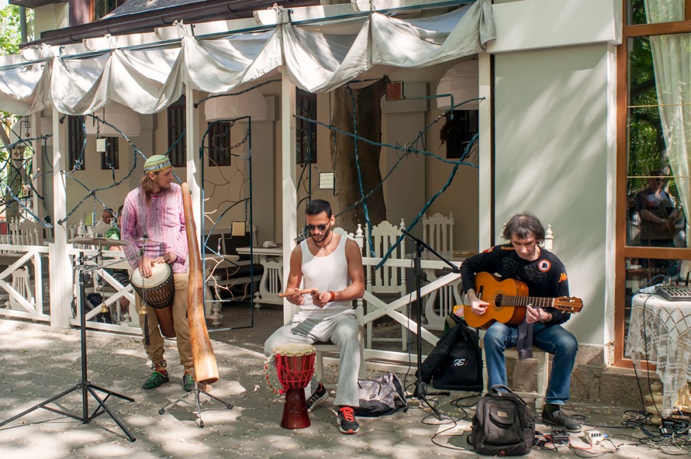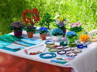 15 мая прошел вернисаж, третий по счету, на котором были представлены живопись, авторская кукла, декоративно-прикладное искусство, ремесленные работы феодосийских художников. Этот не коммерческий проект возник на энтузиазме любителей творчества и благодаря знакомству Марии Переваловой и директора замечательного арт-кафе "Антресоль" Ирины. На вернисаже также присутствовала живая музыка. Детскую программу с волшебством и фокусами представил Никита Беляков - фокусник и режиссер, организатор фестиваля гениального зрителя в п. Орджоникидзе. Вернисаж прошел весело и не принужденно, и посетили его не только люди, но и местные обитатели фауны. Отдельно хочу заметить, что не обошлось без небольшого происшествия - упала ветка на скамейку, где незадолго до этого сидели пожилые люди, а новые не успели занять место, по счастливой случайности никто не пострадал.