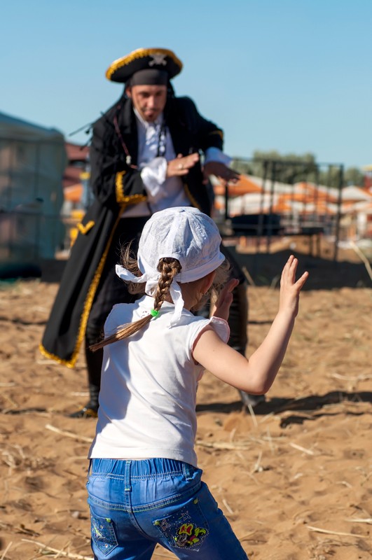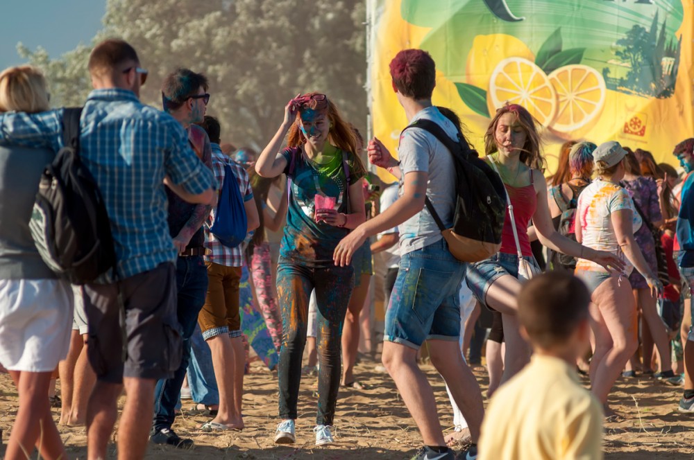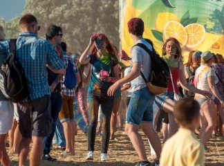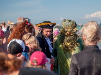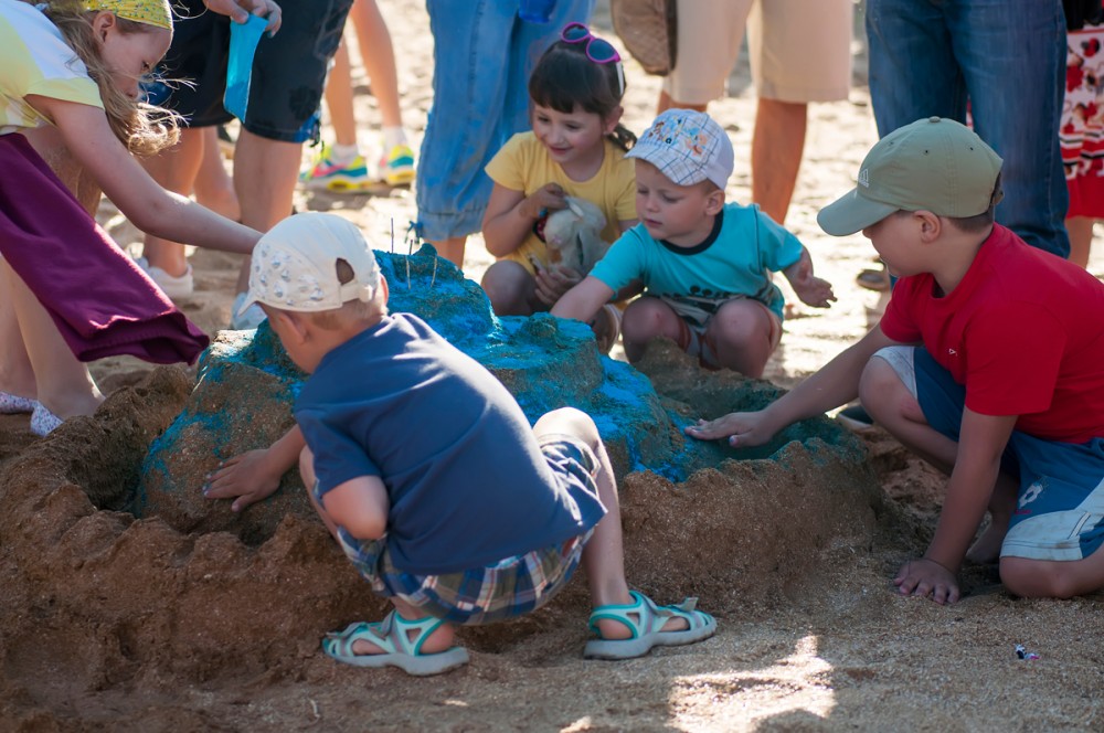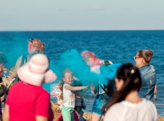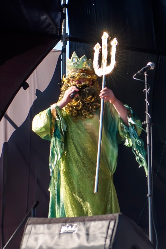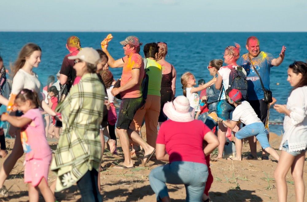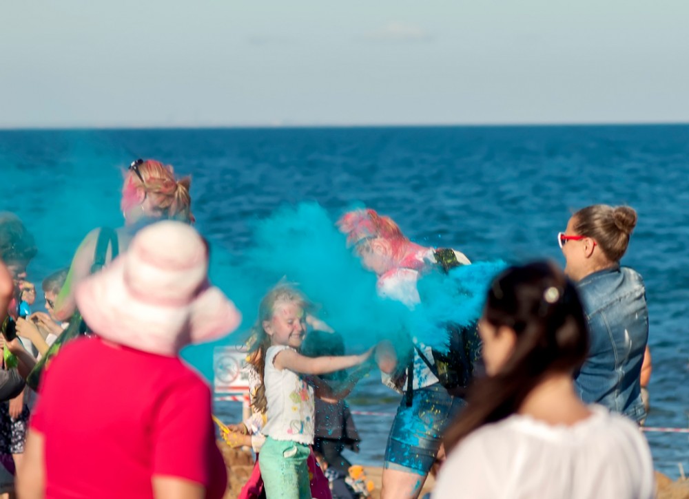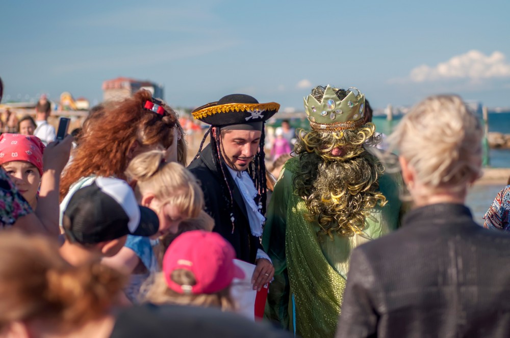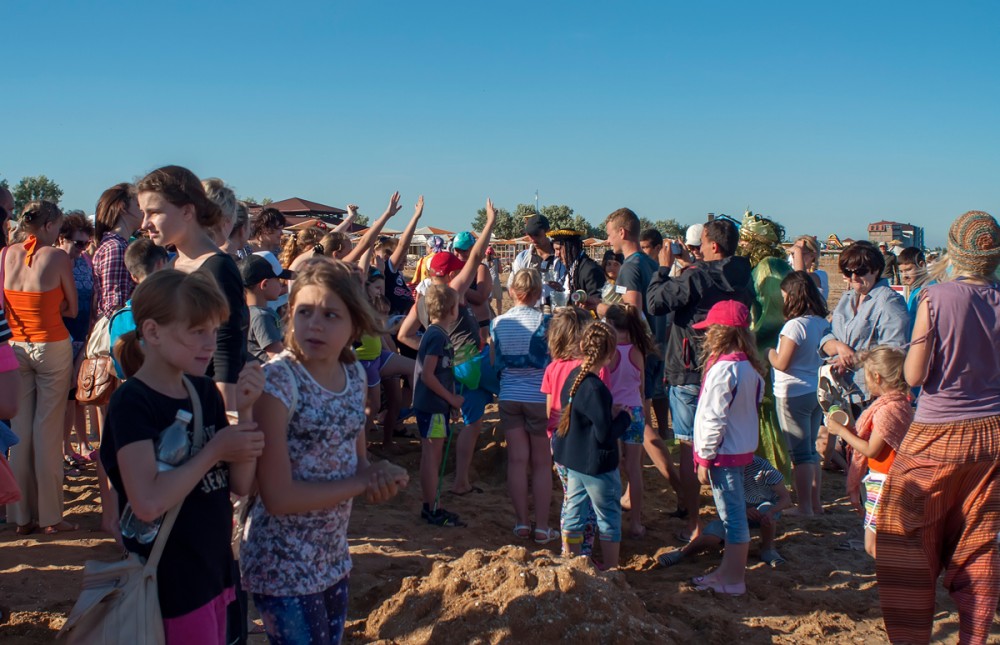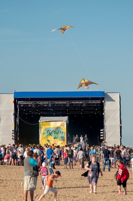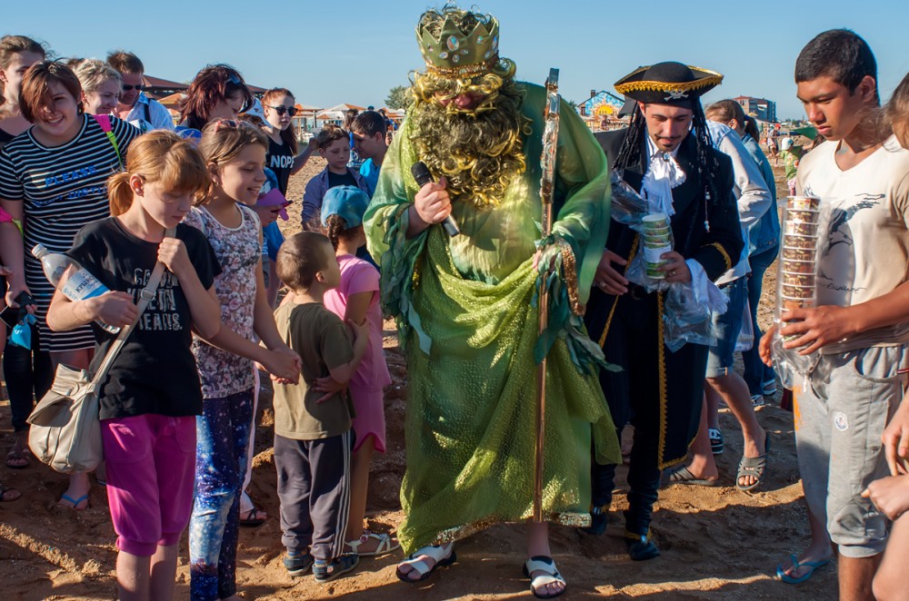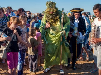 На второй день, гостей фестиваля посетил морской царь, бог морей и потоков Нептун. Он устроил конкурс фигурной лепки из морского песка и напоил участников вкусным чаем. Под чаёк и началась краско-битва. Благодаря ветру, краска ложилась обширном ровным слоем, разлетаясь довольно далеко. И конечно же, все это время, сменяя друг друга, выступали различные музыкальные и творческие коллективы.