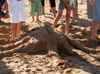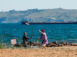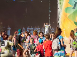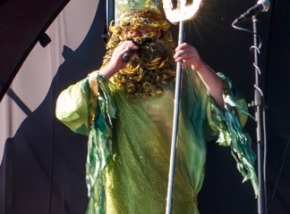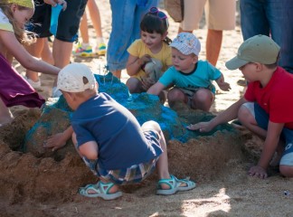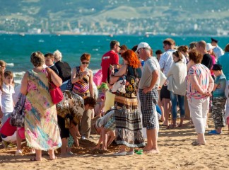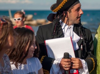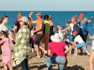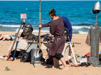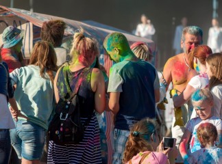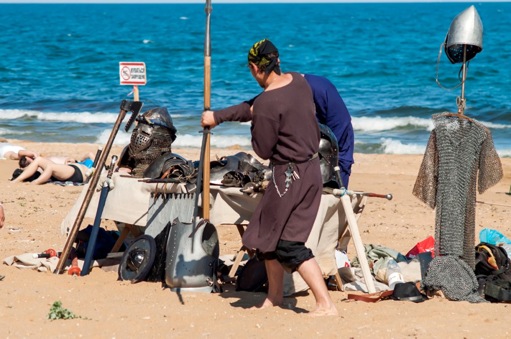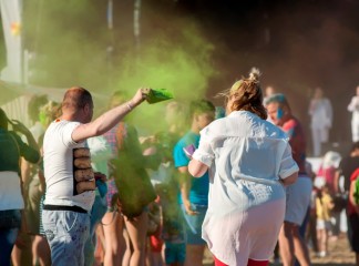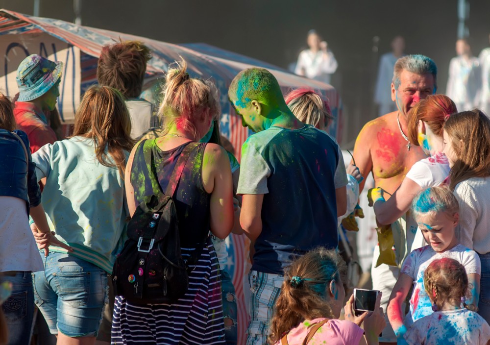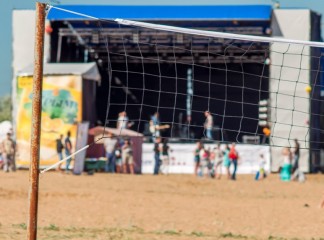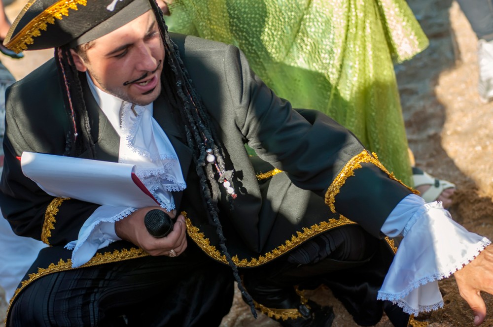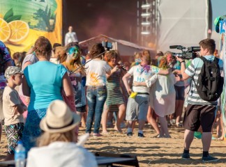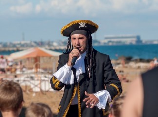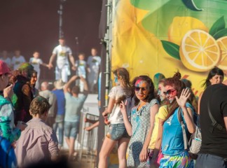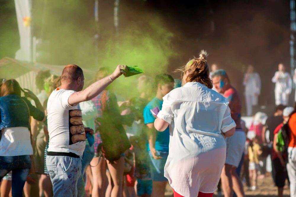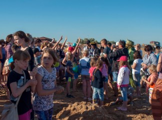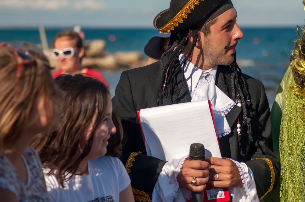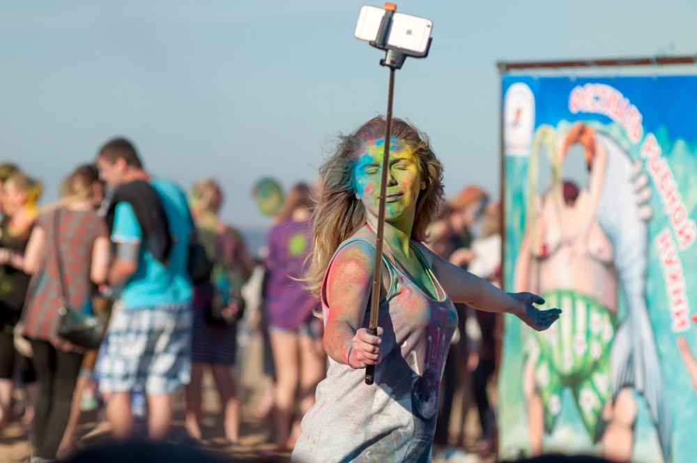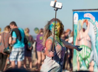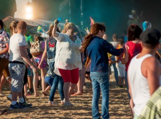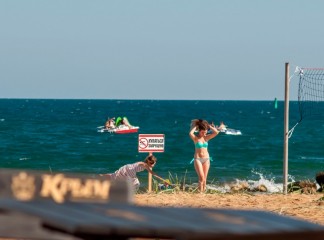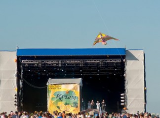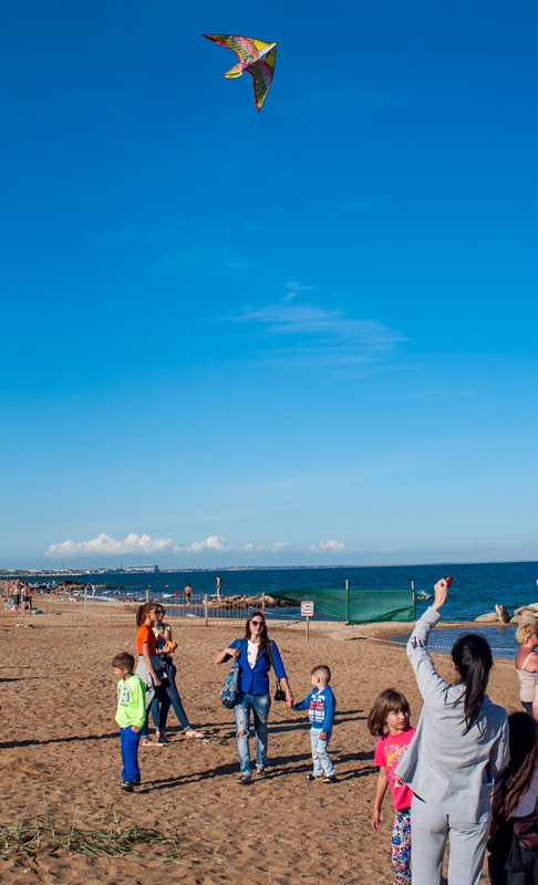 На второй день, гостей фестиваля посетил морской царь, бог морей и потоков Нептун. Он устроил конкурс фигурной лепки из морского песка и напоил участников вкусным чаем. Под чаёк и началась краско-битва. Благодаря ветру, краска ложилась обширном ровным слоем, разлетаясь довольно далеко. И конечно же, все это время, сменяя друг друга, выступали различные музыкальные и творческие коллективы.