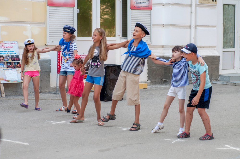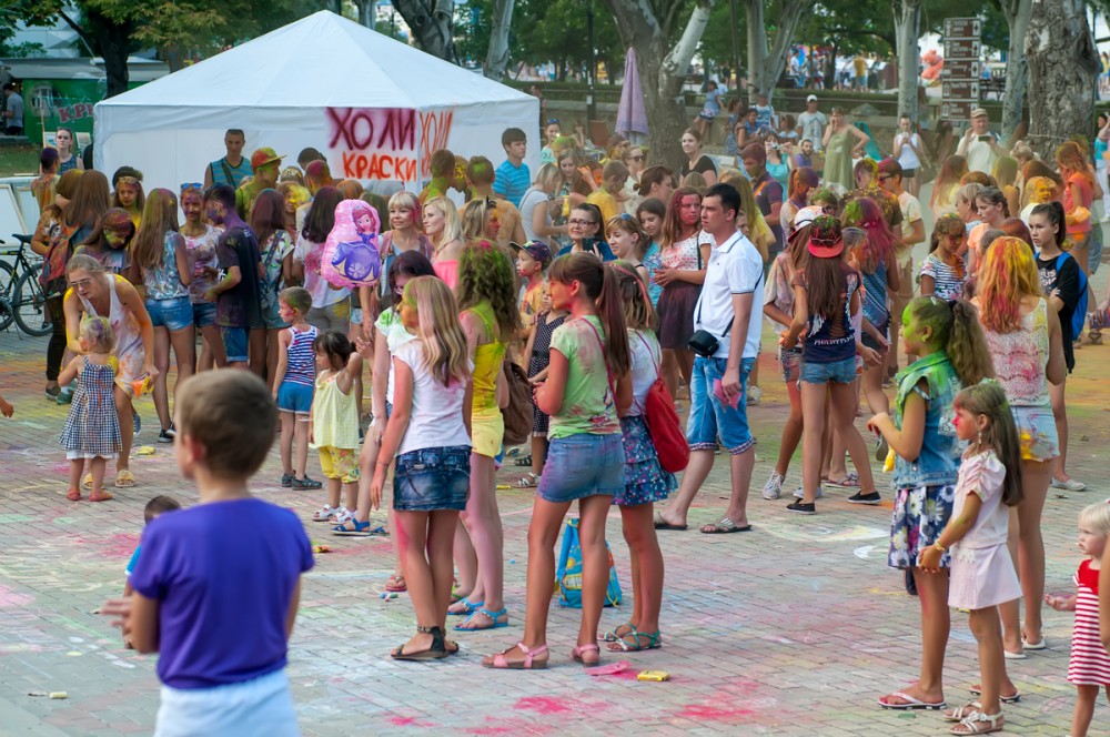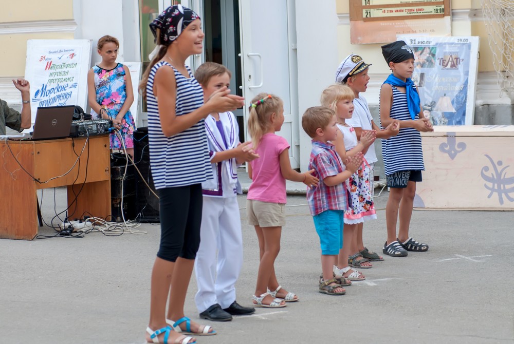 Интерактивная игровая программа «Морские приключения» и развлекательная программа на площади перед светомузыкальным фонтаном, которая включает в себя конкурс рисунка на асфальте, игры с использованием красок Холи