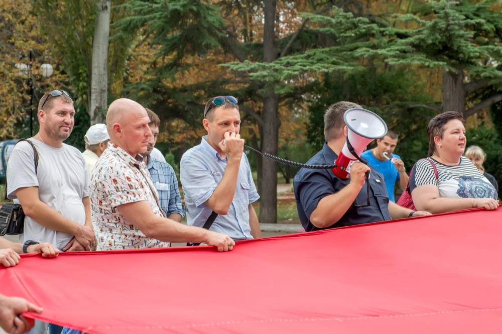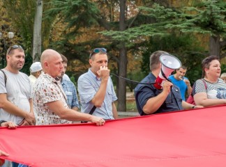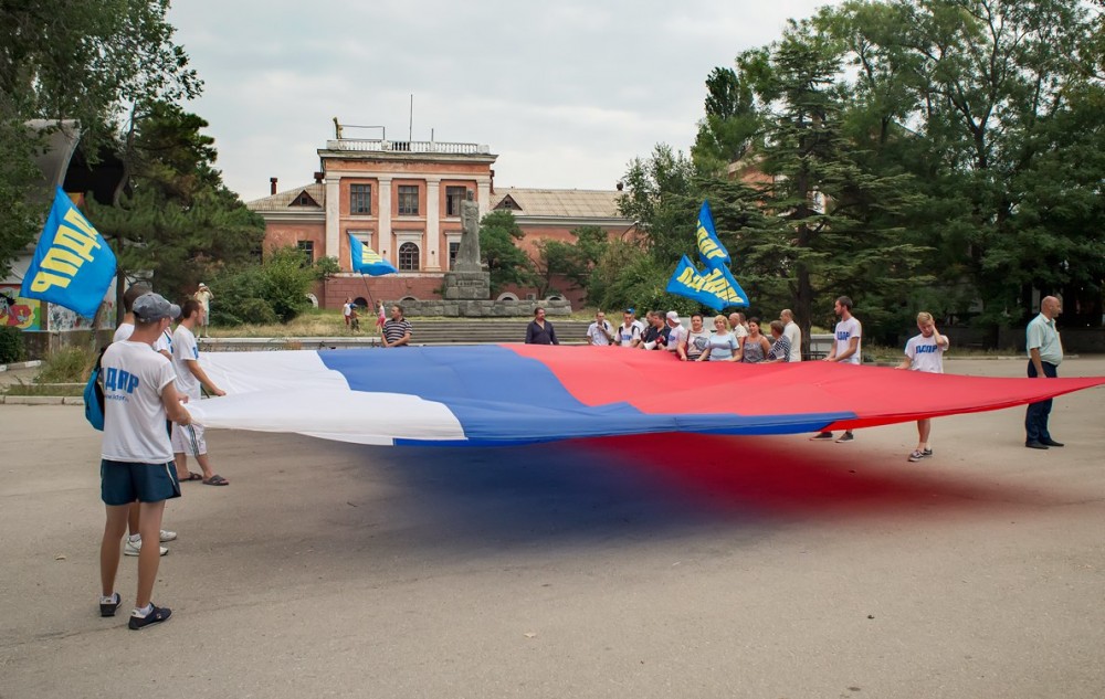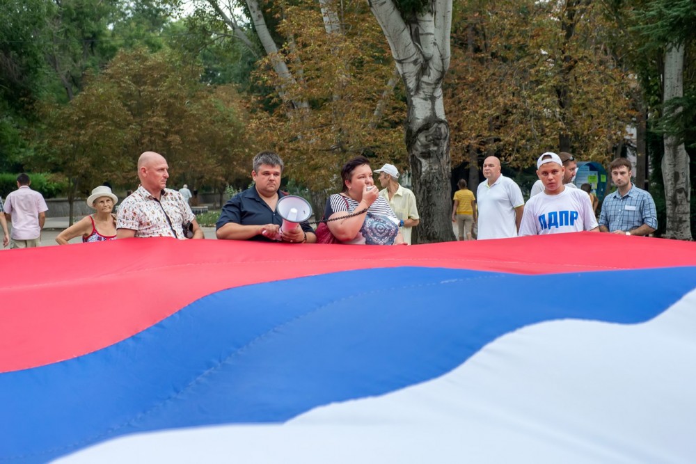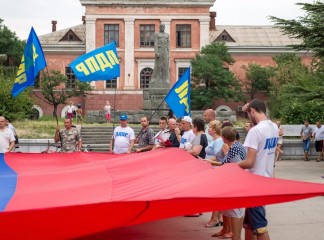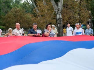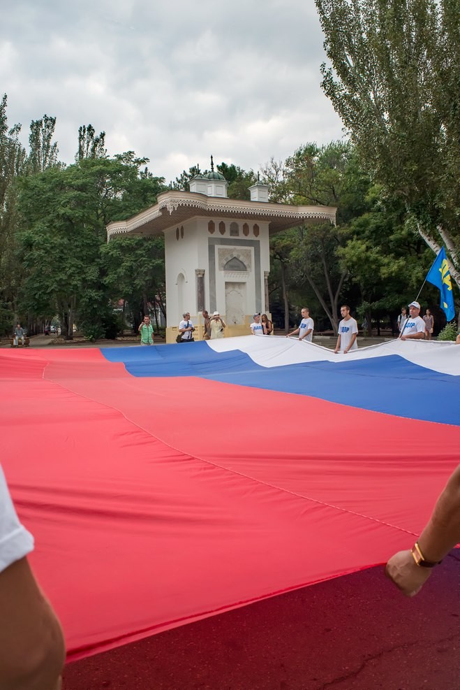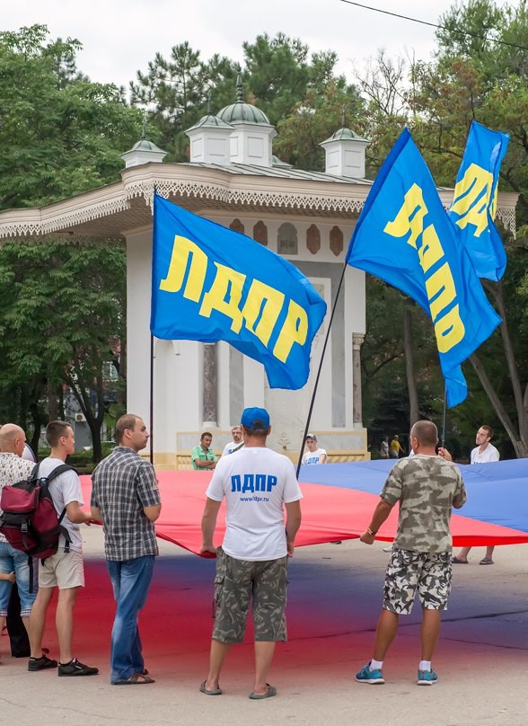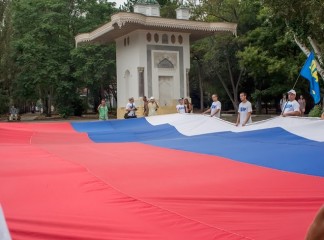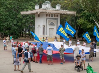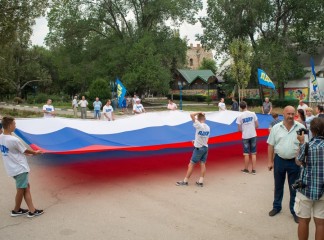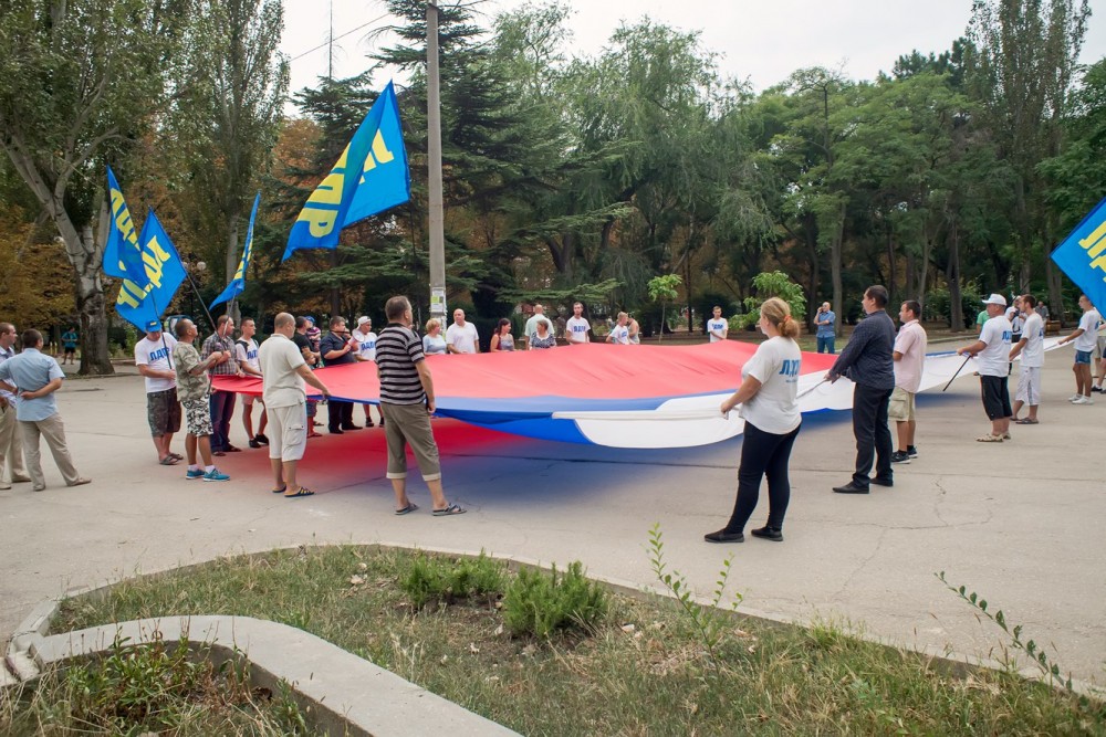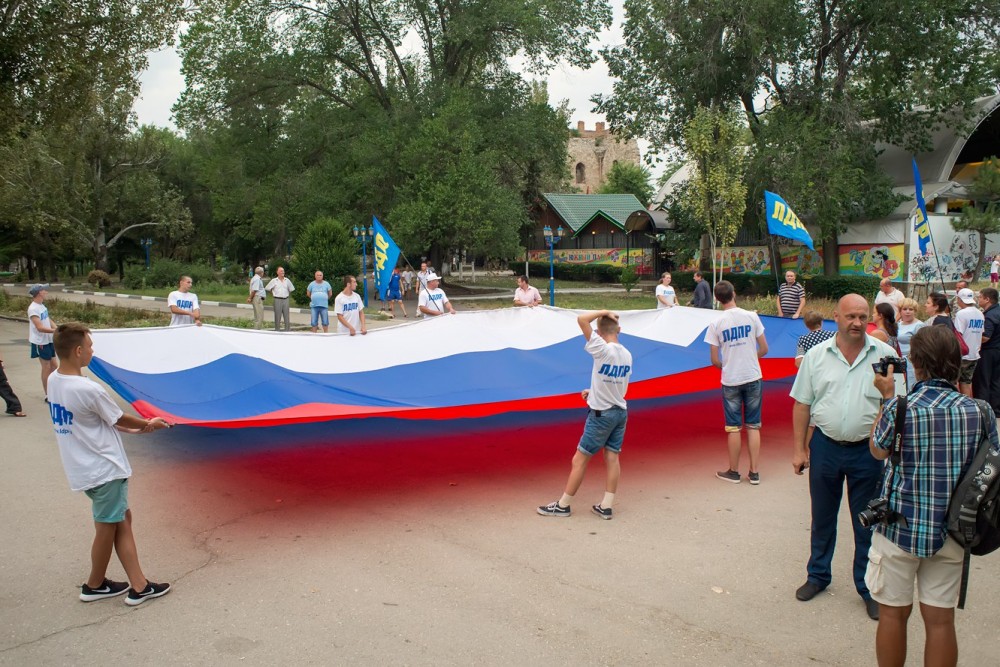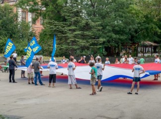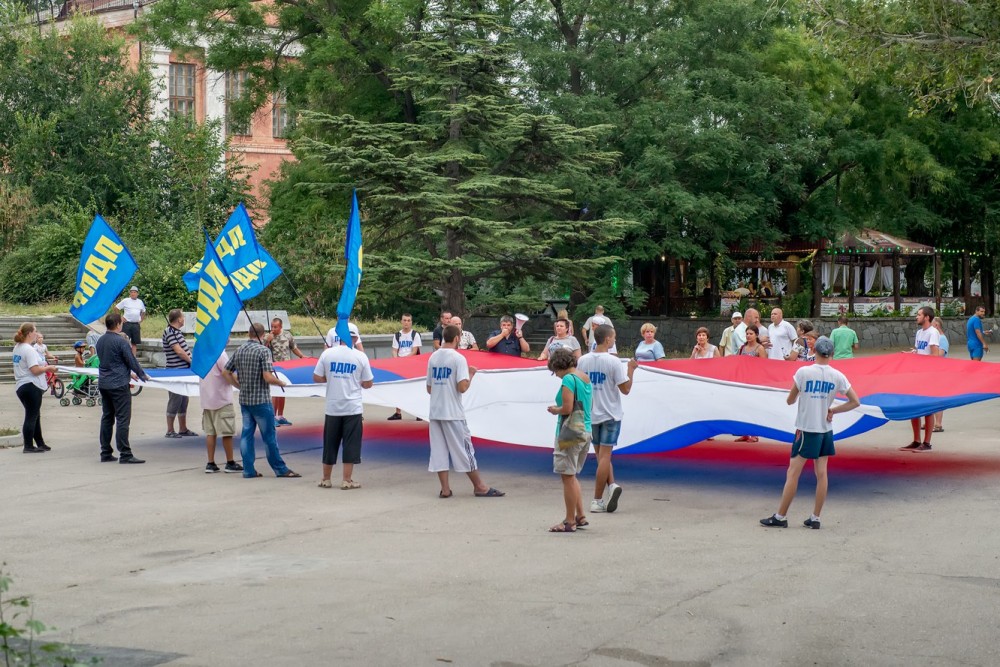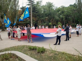 В Феодосии прошел митинг , приуроченный к Дню Государственного флага Российской Федерации. У памятника Ивану Назукину, крымские либерал-демократы расправили триколор, площадью свыше 100 кв. метров, — участника множества про-российских акций 2008 – 2014 годов, неотъемлемая реликвия Крымской весны.